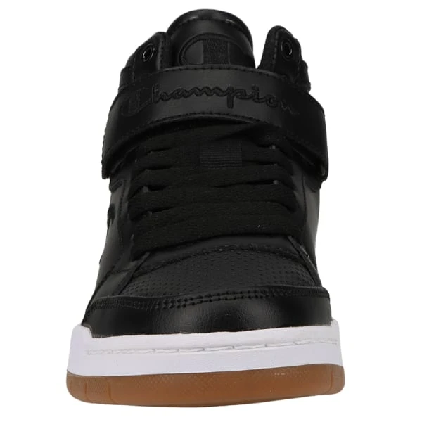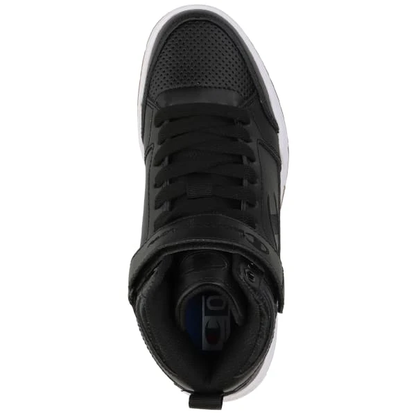Old school style with modern touches. ARENA POWER HI black high-top sneakers are detailed with a Velcro strap at the ankle for a secure fit, and perforated design for a nostalgic feel. Leather and synthetic upper with gum bottom sole provides a classic ride. A removable blended foam and rubber insole offers support and comfort.