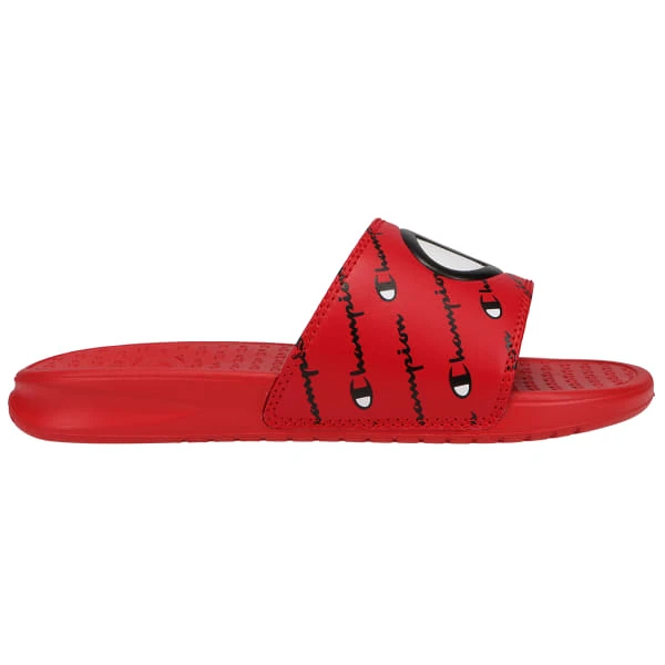 Your kid will love the sporty and comfortable style of these kids’ Champion slide sandals.