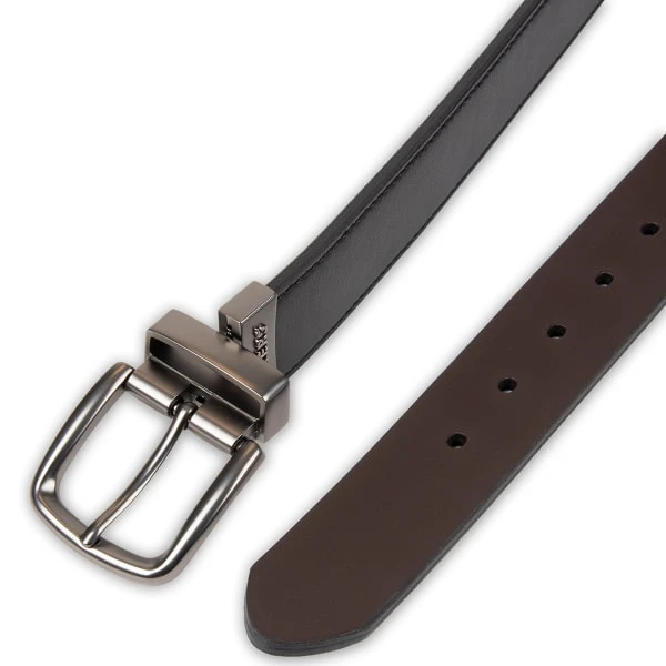 Think versatility. This men’s casual belt features reversible styling and a classic single prong buckle.