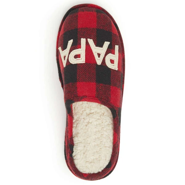 Made with papa bears in mind, these charming slippers are a must for those cozy nights in with the whole family! Classic plaid patterning and felt applique combine for an eye-catching touch, while supersoft memory foam insoles offer cloudlike support throughout the day.
