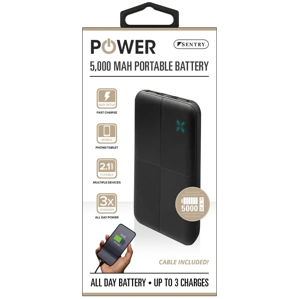 Charge your phone or tablet with the 5,000 mAh Powerbank Charger from Sentry.