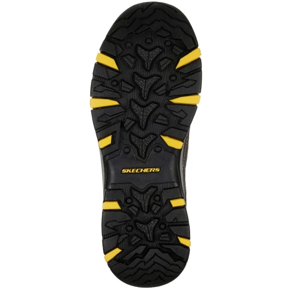 Take on the trails in rugged style and long-lasting comfort wearing Skechers Relaxed Fit: Trego – Pacifico. This lace-up hiking boot features a waterproof suede, synthetic and mesh upper with cushioned Air-Cooled Memory Foam insole.