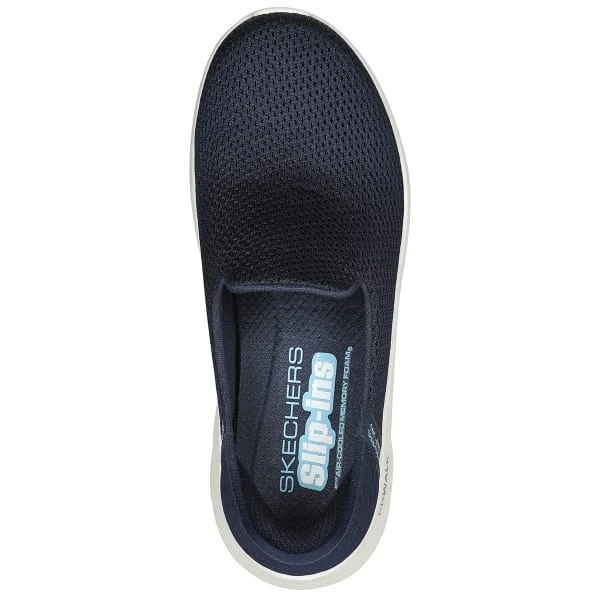 TOUCHLESS FIT Step up your routine with easygoing comfort wearing Skechers Hands Free Slip-ins: GO WALK 6 – Fabulous View. Designed with a unique Comfort Pillow in the heel. This style features an engineered knit upper with lightweight ULTRA GO cushioning, Skechers Air-Cooled Goga Mat insole and supportive high-rebound Hyper Pillars.