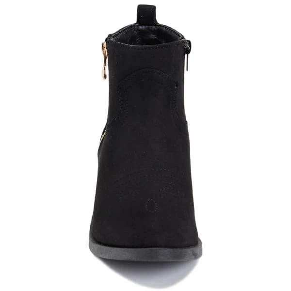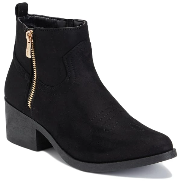 All the swagger without the height. Stride in style wherever you go with this chunky heeled side zip bootie. These boots are made entirely of man-made materials and feature a side zipper for a pop of style, as well as easy on and off.